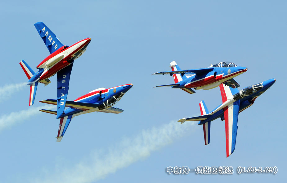 5月25日,法国巡逻兵特技飞行表演队在普罗旺斯地区进行惊险的飞行表演。 图片来源:中国新闻网>>点击观看详细内容