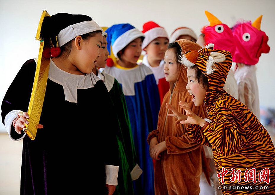 5月28日,辽宁沈阳,沈阳黄河大街小学的小朋友正在表演舞蹈描述自己的幸福的童年。红一/CFP