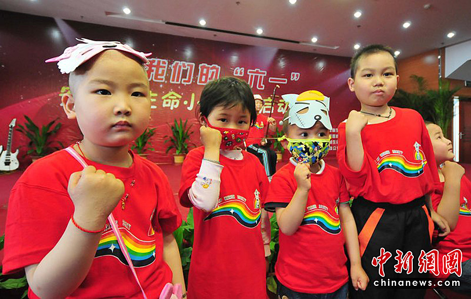 2010年5月30日,合肥,“生命小战士”们紧握拳头,展示他们坚强生活的信念。虞俊杰/CFP