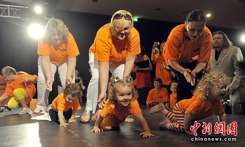当地时间5月31日,乌克兰基辅举行了宝宝爬行大赛。数十名婴儿在母亲的鼓励下奋力向4米外的终点爬去。图片来源:中国新闻网