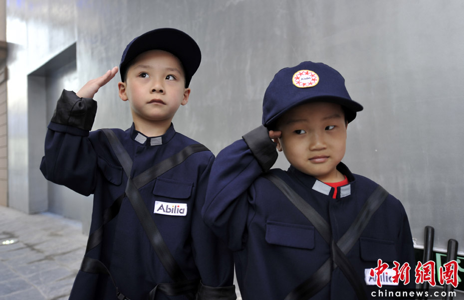 图为孩子体验做警察。 中新网记者 王红纲 摄