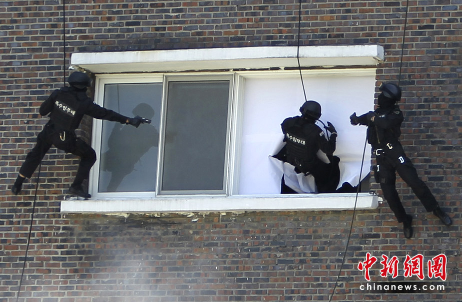 2010年6月1日,在韩国首尔,首尔防卫部队进行了大型反恐军事演练。