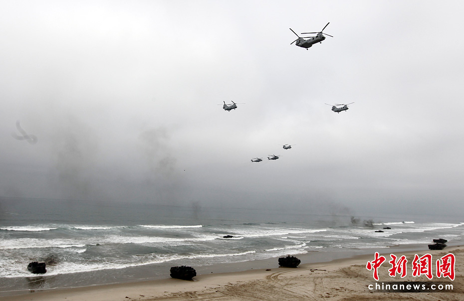 当地时间6月4日,约5000名水兵和陆战队员在美国加利福尼亚州举行了代号为“黎明突击”的抢滩登陆军事演习。图片来源:中国新闻网