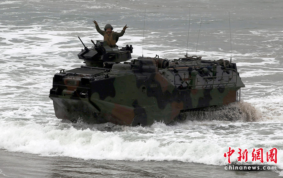 当地时间6月4日,约5000名水兵和陆战队员在美国加利福尼亚州举行了代号为“黎明突击”的抢滩登陆军事演习。图片来源:中国新闻网