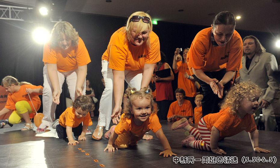 当地时间5月31日,乌克兰基辅举行了宝宝爬行大赛。数十名婴儿在母亲的鼓励下奋力向4米外的终点爬去。图片来源:中国新闻网>>点击观看详细内容