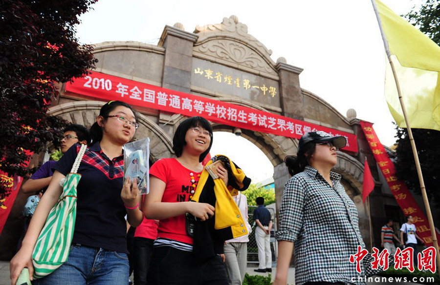 2010年6月6日,即将参加高考的考生熟悉完烟台一中考点后,充满自信地走出校门。初阳/CFP
