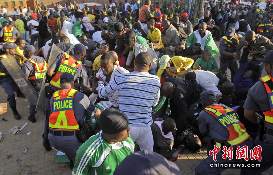 6月6日,在南非约翰内斯堡市郊的马库隆球场进行的尼日利亚队和朝鲜队的世界杯热身赛前发生了球迷踩踏事件。这起恶性踩踏事件共造成9人受伤,其中包括1名安保人员。据悉,在恶性踩踏事件发生前后,当地安全人员对球迷们进行了镇压,恶性踩踏事件很可能与此次镇压有关。