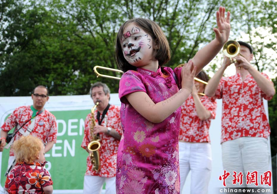 当地时间2010年6月6日,英国伦敦举行卡姆登绿色市集(Camden Green Fair),这是英国伦敦每年环保领域的“重头戏”。本届市集的主旨是要唤起大众对环境问题的关注,选择更加可持续发展的生活方式。据活动主办方预计,本届市集将吸引来自英国各地和世界各国的2万多人参加。图为一名英国小女孩儿身着中式旗袍翩翩起舞,宣传环保。Fiona/摄 Fiona 马小刚/文