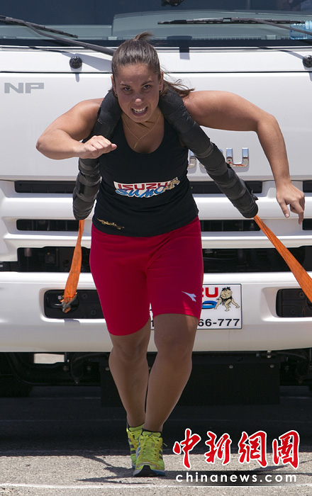 6月8日,以色列在海滨城市特拉维夫举行了拉卡车大赛。比赛要求将一台7.5吨的卡车拉到30米以外,用时最短者为胜者。该项赛事不但吸引了世界上众多男性大力士,更有许多女性大力士出战。图片来源:中国新闻网