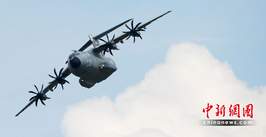 6月8日,德国柏林,一架空中客车A400M军用运输机在2010年柏林国际航空展上试飞。