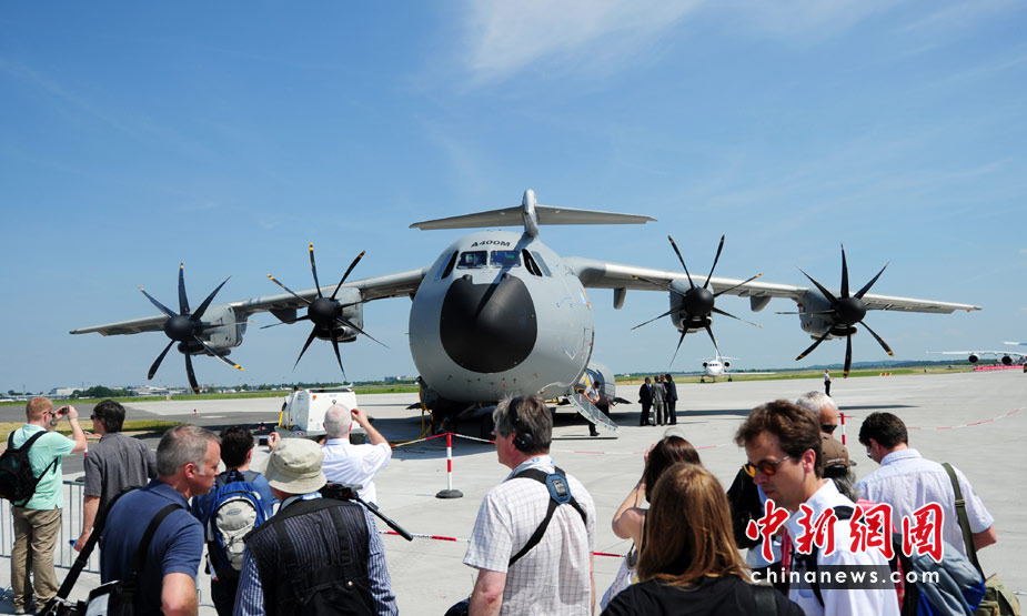 6月8日,德国柏林,一架空中客车A400M军用运输机在2010年柏林国际航空展上试飞。