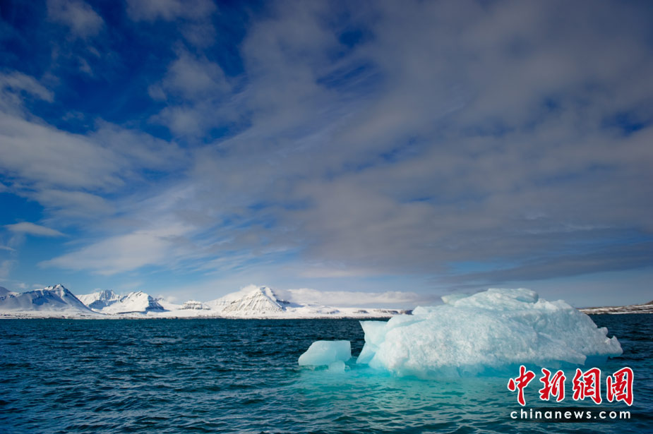 挪威的新奥勒松建有多个国家的北极考察站。图为6月5日拍摄的挪威新奥勒松海岸的冰山。