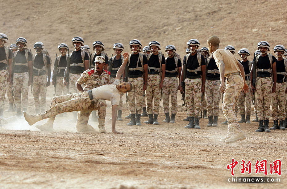 当地时间6月9日,在沙特阿拉伯的利雅得,沙特特种兵学员在毕业表演中展示所学技能。图片来源:中国新闻网