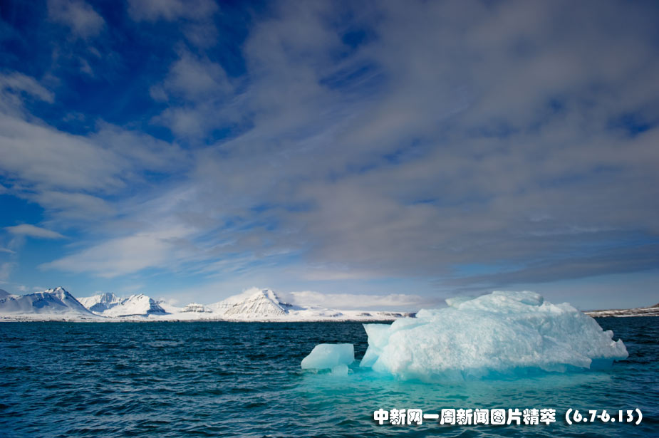 近日拍摄的挪威新奥勒松海岸的冰山。