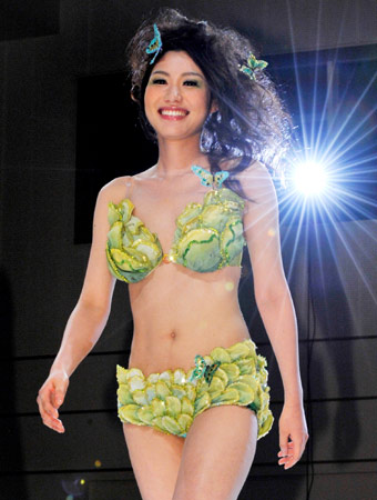 5月25日,日本东京举办了一场内衣创意设计大赛,作品风格新奇搞怪,有白菜、圣女、金鱼、天鹅、蜘蛛、甚至洋葱等多种造型,火辣的模特配以怪异的内衣,令观众大饱眼福。