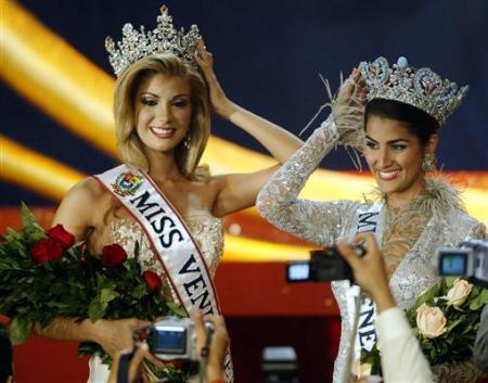 18岁的Ana Karina Anez(左)加冕2003年委内瑞拉小姐冠军,她将代表本国参加2004年环球小姐角逐。亚军Valentina Patruno(右)则将参加2003年世界小姐选美。