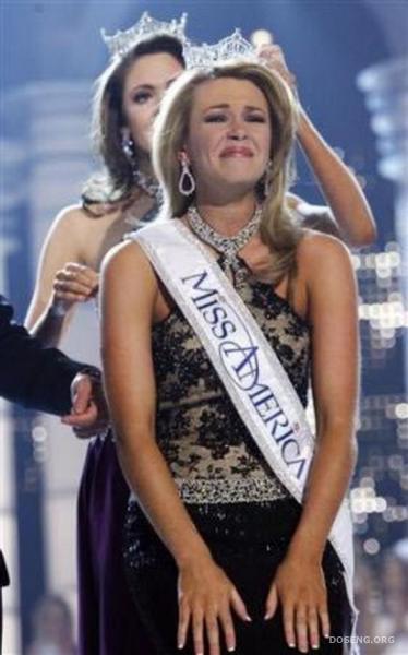 俄克拉荷马州小姐纳尔逊(Lauren Nelson)当选2007年美国小姐后激动落泪。