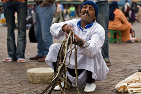 组图:探秘摩洛哥街头迷恋玩蛇的大师(6)