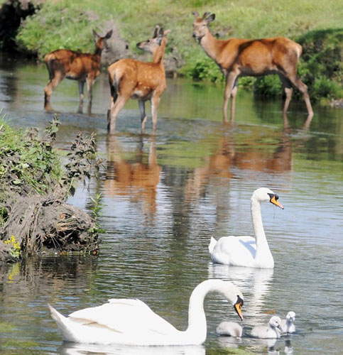 组图:凶悍天鹅公园湖中与小鹿抢地盘(5)