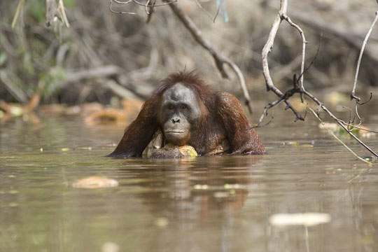 英国媒体6月8日公布了一组罕见的大猩猩在水中游泳寻觅食物的照片。