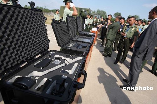 驻河北武警某部6月9日下午接受参加首届东盟与中日韩(10+3)武装部队非传统安全论坛代表检阅,并演示训练成果。来自东盟与中日韩等国33名代表参加此次论坛,本届为期3天的论坛旨在加强对非传统安安全问题的研究、增进互信、扩大共识、促进东盟与中日韩武装部队共同应对非传统安安全威胁的挑战。中新社发 宋吉河 摄