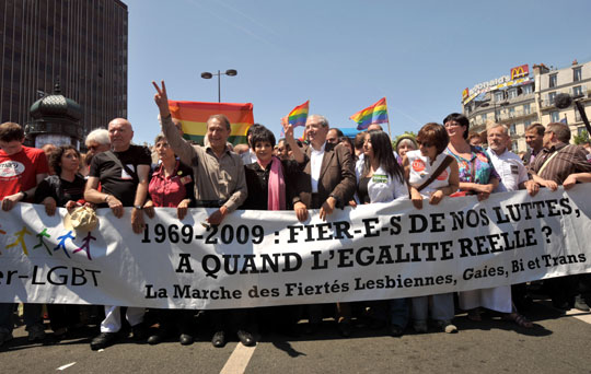 法国第八届同性恋大游行二十七日下午在巴黎举行,巴黎社会党籍市长、同性恋者德拉诺埃和法国前文化部长雅克朗等参加了游行。