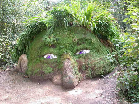 这个奇怪的草雕坐落在英格兰康沃尔郡一家乡村大宅的花园里。好像人的半张脸,正浮出地面窥探着什么。