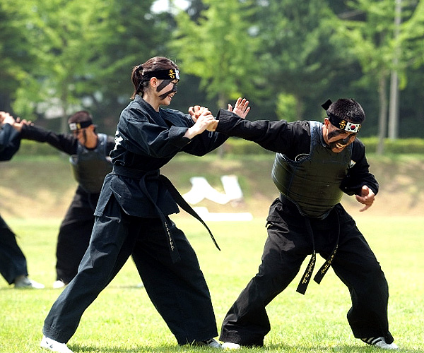 7月8日,韩国特种部队出动男女特种兵进行了跆拳道格斗术演练及特技表演。近日,朝核危机以来韩国三军部队频频进行军演。