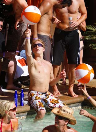 在美国赌城拉斯维加斯的威尼斯人赌场饭店,有一个独一无二的露天泳池,它没有幽静的花园,也没有海豚表演,在这里只允许成人入内,在泳池入口,有工作人员负责检查每个人的身份证,以防止未成年人进入。这里每个周末都会举行狂欢Party。