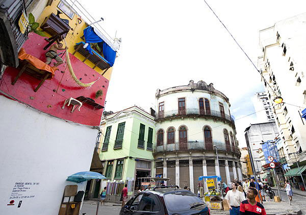 当地时间7月10日,在巴西里约热内卢,艺术家加布里埃尔·普里莫躺在墙上的吊床里休息。他不仅楼房的外墙上安装了家具和生活用品,而且从09年5月23日起就生活在这面墙上。以此传达一种新的居住理念。