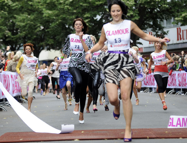 当地时间7月11日,在德国首都柏林举行了一场“高跟鞋百米短跑大赛”,赛会规定参赛者所穿的高跟鞋不得低于7公分。