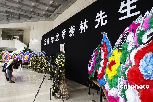 7月12日,北大师生和社会公众排队前来悼念国学大师季羡林先生。北京大学百年纪念讲堂南大厅季羡林先生灵堂当天开始接受季老生前友好、广大师生和社会公众的吊唁。7月11日上午,北京大学资深教授、国学大师季羡林先生在北京301医院辞世,享年98岁。中新社发 郑雄增 摄