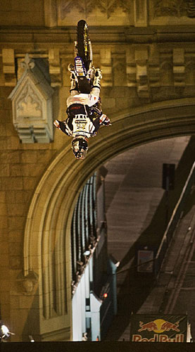 据英国媒体13日报道,澳大利亚FMX摩托车手罗比-麦迪逊成功飞越英国伦敦塔桥。
