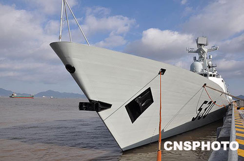 7月15日,中国海军第三批护航编队誓师动员大会在浙江舟山某部隆重举行。经中央军委批准,中国海军第三批护航编队将于7月16日从浙江舟山某军港启程,赴亚丁湾索马里海域接替第二批护航编队遂行任务。即将出征的第三批护航编队由东海舰队的 “舟山”号导弹护卫舰、“徐州”号导弹护卫舰和“千岛湖”号综合补给舰,两架舰载直升机以及海军特战队员组成。 中新社发 阿胡 摄