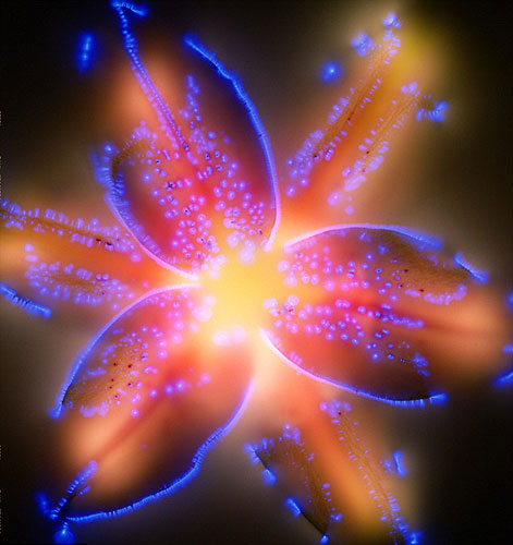 据英国媒体近日报道,美国摄影师伯特-布尔特曼花费10年心血拍摄了令人惊异的植物通电照片。这些照片是电流穿过金属板,而金属板顶部放置着植物,在这种条件下拍摄植物通电的情景。