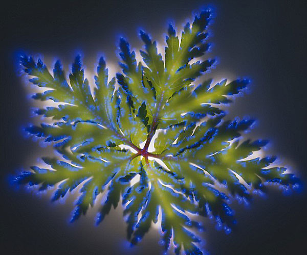 据英国媒体近日报道,美国摄影师伯特-布尔特曼花费10年心血拍摄了令人惊异的植物通电照片。这些照片是电流穿过金属板,而金属板顶部放置着植物,在这种条件下拍摄植物通电的情景。