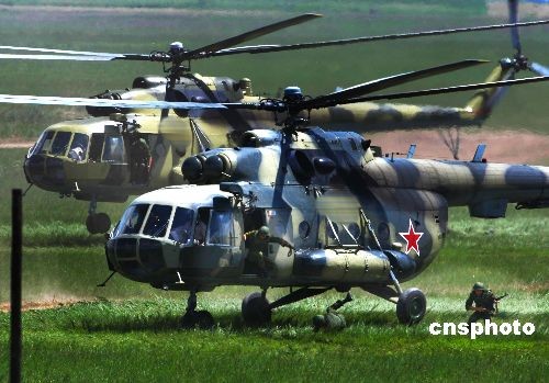 7月21日,参加“和平使命—2009”联合反恐军事演习的俄方参演部队进行分练,中方参演部队予以配合。在80分钟的分练中,进行了 “联合封控、立体突破、机动歼敌、纵深围剿”等内容达到了预期的效果。俄方加强步兵营、空降兵突击连和参演的俄空军各种战机参加了分练。中新社发 宋吉河 摄
