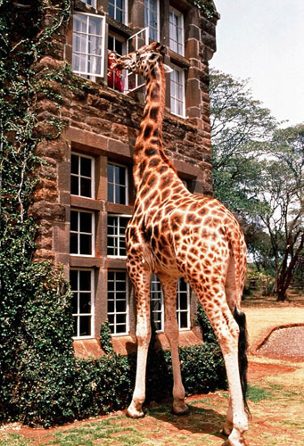 据英国媒体21日报道,肯尼亚的一个家庭多年来把八只长颈鹿当做自己的家庭成员,一起生活。当游客们到此时,不仅可以与长颈鹿亲密接触,甚至可以同长颈鹿同吃同住。这些稀有长颈鹿其高度都超过16英尺,重量超过2吨,预期可以活到30岁。