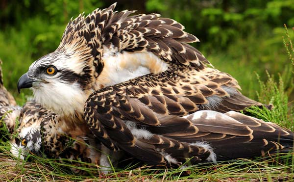 4. 在英格兰东北部的Northumberland郡上,一只体格强健的小鱼鹰正“跃跃欲飞”。200年来,一直都没有小鱼鹰在Northumberland郡降生过了,上周林业委员会的一组专家特地来“拜访”这些小家伙们。