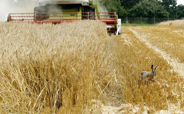 6. 收割机来了,野兔匆忙撤退,摄于德国。