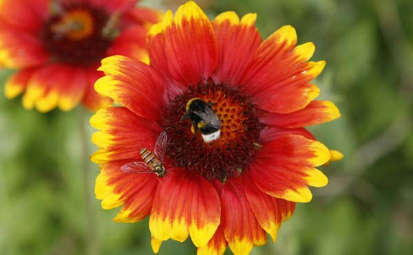 13. 花上落着一只大黄蜂(humble bee)和一只黄蜂(Wasp),一种新型杀虫剂neonicotinoids的使用导致蜜蜂大量死亡。