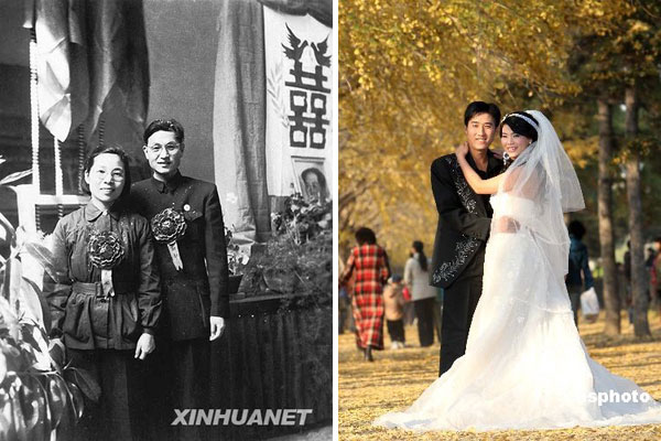 左图:1952年,化工设计专家陈冠荣与黄鹂在北京结婚。(图片来源:新华网)