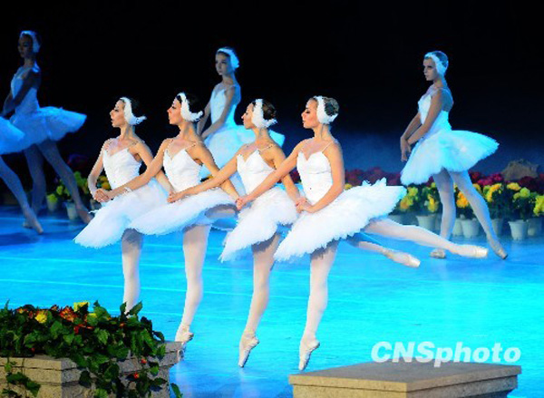 7月27日晚间,“2009年中俄青少年运动会”开幕式上呈现精彩的芭蕾舞《天鹅湖》选段表演。开幕式当天在国家游泳中心“水立方”举行。中新社发 侯宇 摄
