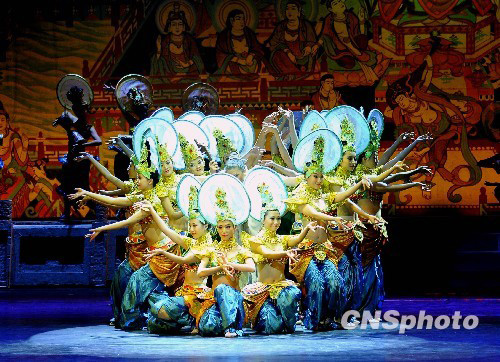 7月29日晚,作为国庆60周年献礼的优秀演出剧目,由中宣部和文化部主办,甘肃省歌舞剧院演出的经典舞剧《丝路花雨》,在国家大剧院上演。中新社发 潘旭临 摄