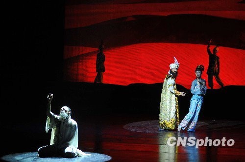 7月29日晚,作为国庆60周年献礼的优秀演出剧目,由中宣部和文化部主办,甘肃省歌舞剧院演出的经典舞剧《丝路花雨》,在国家大剧院上演。中新社发 潘旭临 摄