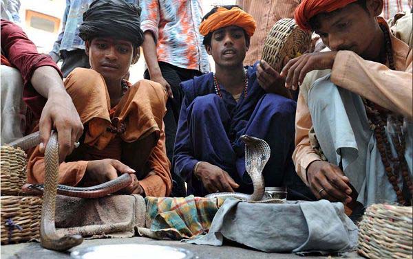 图集:印度教蛇节 眼镜蛇洗牛奶浴