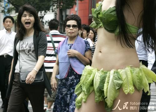 "生菜比基尼"女郎日本街头宣传动物保护