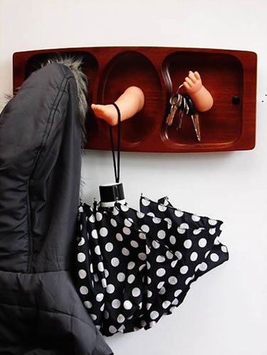 这些墙钩很可爱!它们是一些“娃娃”的胳膊和腿,胖乎乎的。可挂衣服、雨伞、钥匙等。