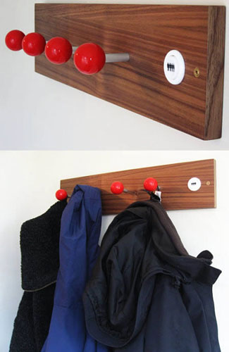 商场里一般用游戏杆或按钮式的墙钩,方便顾客挂衣服、雨伞 、挎包等,也许是因为这类墙钩比较美观吧。
