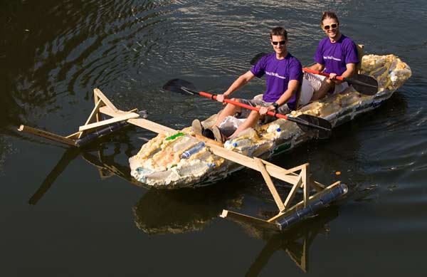 当地时间8月8日,来自新西兰的木匠Campbell Holm和他的伙伴在英国伦敦进行训练。他们划得这条船是利用回收的塑料瓶制作的。他们准备在9月份划着它横渡英吉利海峡。